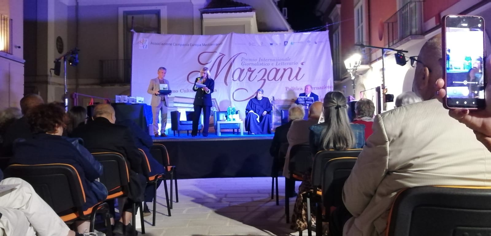 San Giorgio del Sannio ha ospitato, il 30 e 31 agosto, la diciottesima edizione del Premio Internazionale Giornalistico e Letterario “Marzani”, promosso dall’Associazione Campania Europa Mediterraneo presieduta da Enzo Parziale. Un appuntamento ormai consolidato che, anche quest’anno, ha confermato la sua vocazione: creare uno spazio di incontro dove cultura, giornalismo e impegno civile dialogano per dare voce ai grandi temi del nostro tempo. La conduzione delle due serate è stata affidata ai giornalisti Teresa Simeone e Achille Mottola, che hanno guidato il pubblico attraverso testimonianze, riflessioni e contributi di giornalisti, scrittori, diplomatici ed esponenti del mondo istituzionale e della cooperazione internazionale.